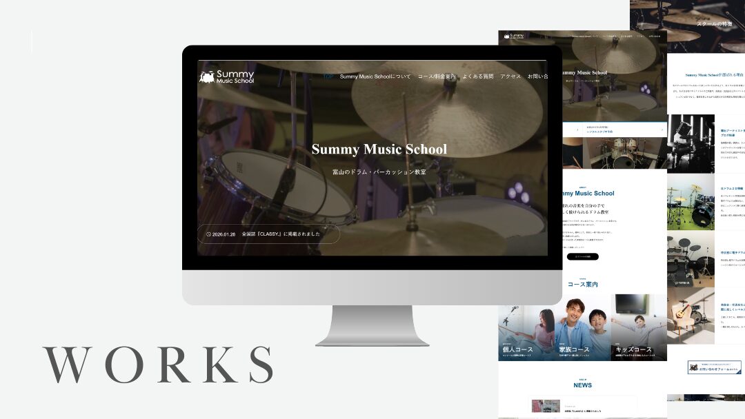 WordPressのTCDテーマ「QUALIA」にてドラム教室のHPを制作いたしました。